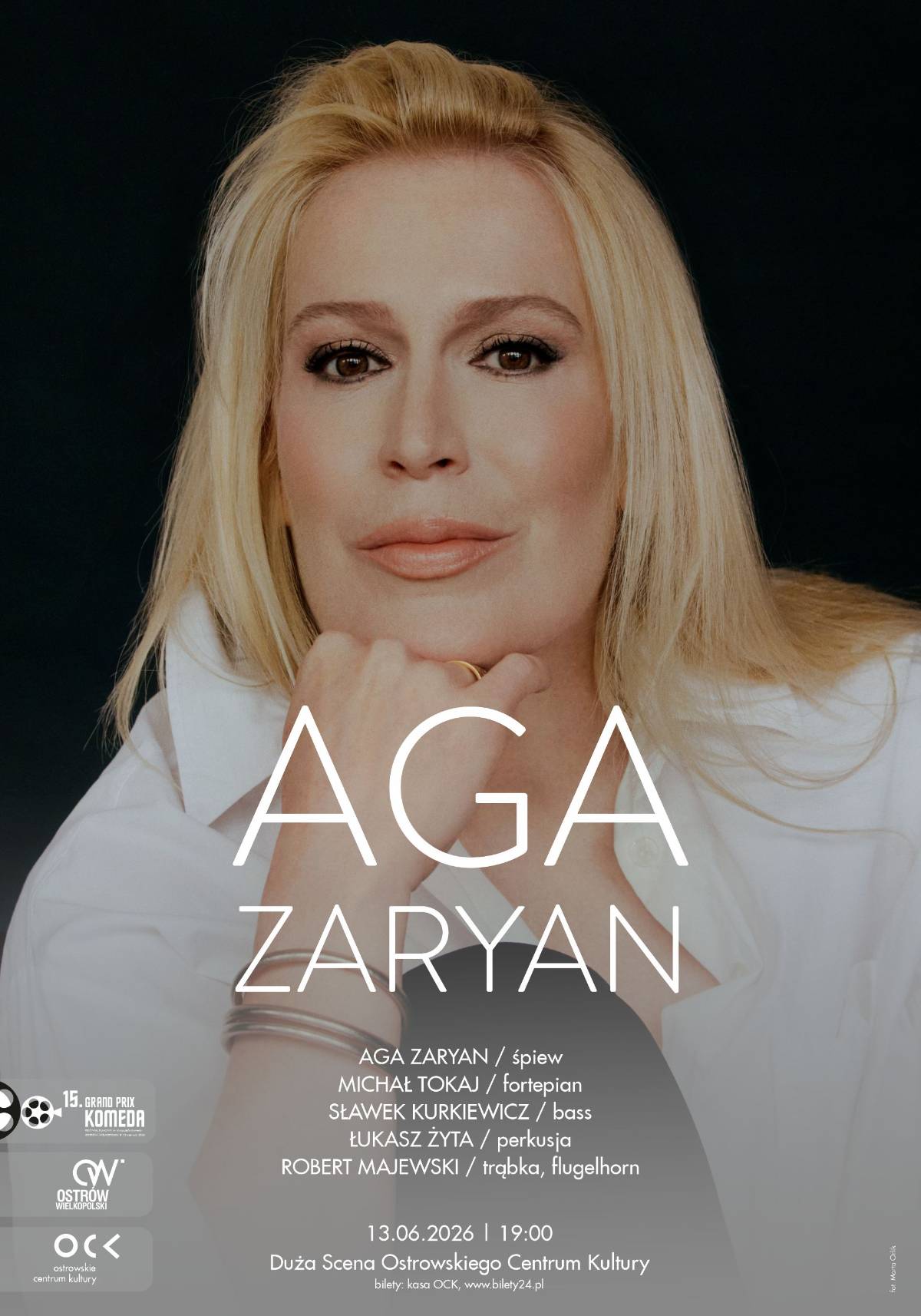 Twórczość Agi Zaryan to kwintesencja tego, co najlepsze w historii jazzu, to kontynuacja tradycji legendarnych dokonań wokalistek jazzowych. Światowe uznanie artystka zawdzięcza wyjątkowemu stylowi z charakterystyczną lekkością frazowania i ciepłym matowym tonem głosu. Jako pierwsza polska artystka wydawała płyty pod szyldem legendarnej wytwórni Blue Note Records z Nowego Jorku. Aga Zaryan jest laureatką najważniejszych nagród w świecie muzycznym, uznana za jedną z najlepszych wokalistek jazzowych w Polsce, w tym kilkunastokrotna zwyciężczyni ankiety Jazz Top – w kategorii wokalistka jazzowa roku magazynu „Jazz Forum”. Rekordowa sprzedaż jej albumów udowadnia, że ambicja i wysublimowany styl pozwalają dotrzeć do szerokiego grona publiczności. Artystka podbija serca publiczności od Tokyo poprzez Nowy York, koncertując na całym świecie. 15. Grand Prix Komeda. Festiwal Filmowy im. Krzysztofa Komedy odbędzie się w dniach od 8 do 13 czerwca w Ostrowie Wielkopolskim.